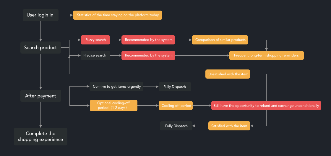 Based on this phenomenon, through in-depth research on the Amazon.com app and user data analysis and user research analysis, the concept of a "cooling-off period" was optimised to allow for a certain period of time after payment based on the value of the product, so that the product could be returned quickly and immediately on its own initiative, thus fundamentally reducing redundant manpower and the problem of commodity waste and consumption. waste and consumption.
