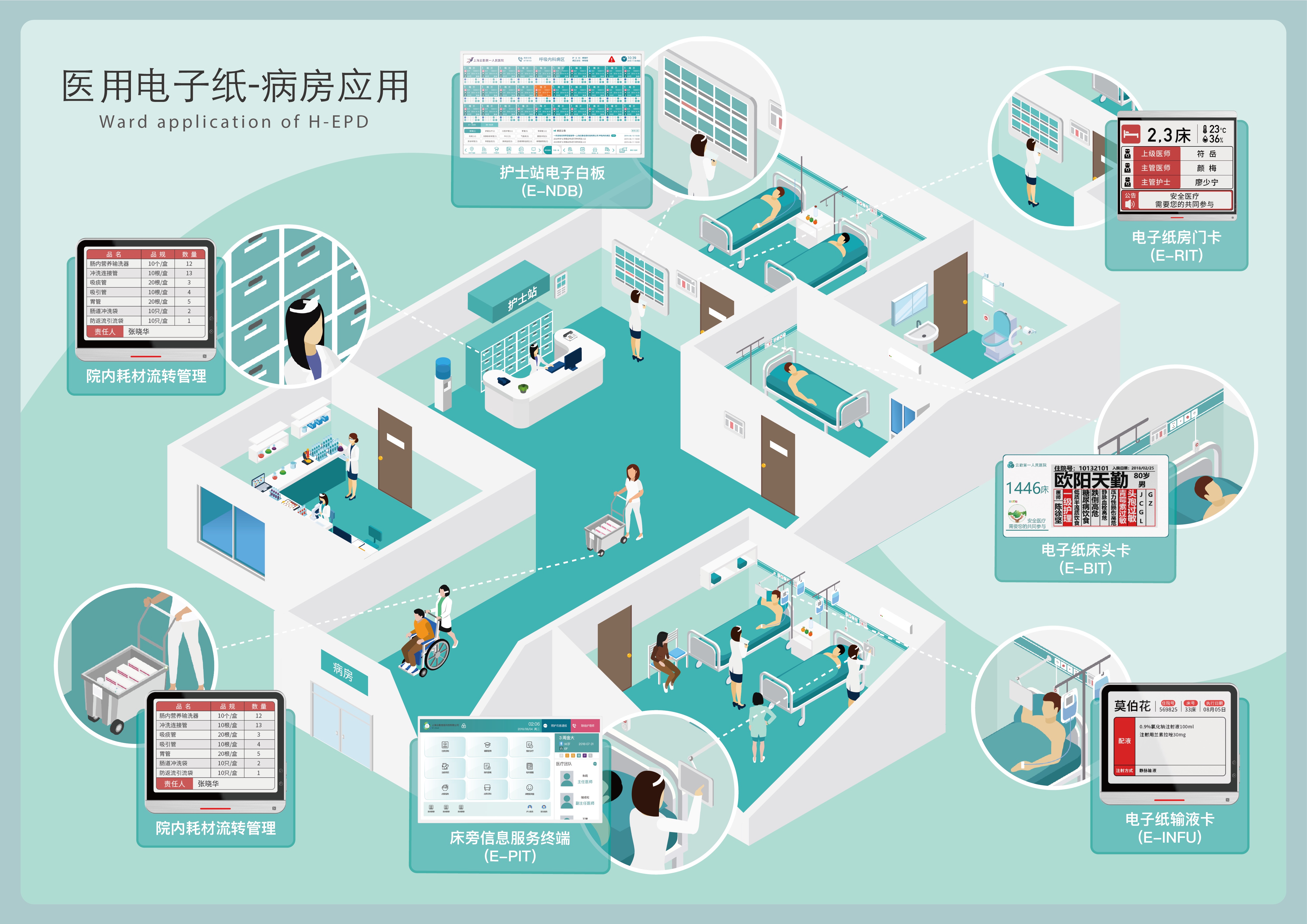Unlike existing systems, the electronic ink screen and its new real-time system will save power and provide a new visual experience at a lower cost and procurement budget. Thanks to the refresh capability of the ink screen, the refresh frequency and time can be adjusted according to demand and the ward management and consultation areas can be organically separated to meet the needs of daily disinfection.